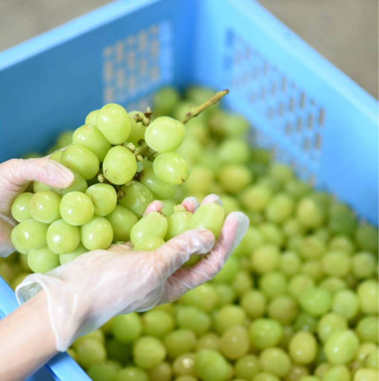 長野の澄んだ空気と日差しのもと育ったシャインマスカットを、